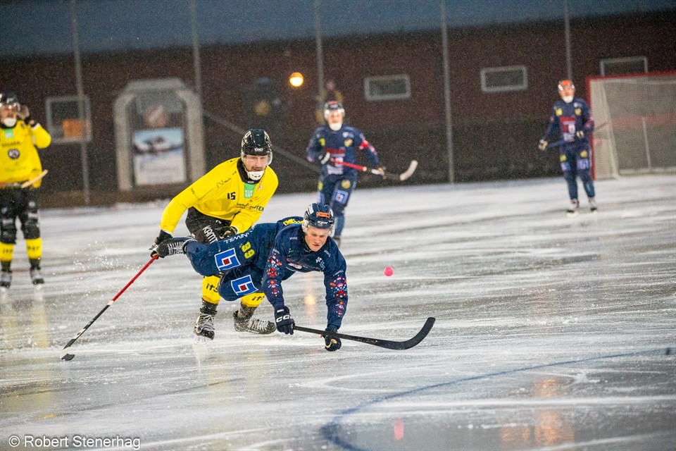 Falu BS hamnade i ett 0–2-underläge direkt i matchöppningen i lördagens hemmapremiär. ÖSK fick relativt ostört göra två mål på de inledande tre minuterna. Visserligen reducerade Micke Pettersson till 1-2 på ett snyggt skott i den femte minuten, assisterad av Lukas Mårdberg. Men när sedan ÖSK gjorde 1-3 före strax före paus och sedan 1-4 i början av andra halvlek blev uppförsbacken för lång. – De var framför allt hetare i början – sedan har vi svårt att komma ikapp, säger BS lagkapten Lukas Mårdberg till Falu-Kuriren. Ösregnet gjorde spelet chansartat på den svårspelade isen. Men det var alltså inte utelaget BS som drog fördel av det, utan i stället hallaget Örebro som krigade hårdast. Tyvärr var det inte BS dag, men det är bara att dra lärdom av misstagen och jobba vidare för att utveckla spelet och även få igång hörnskyttet. BS har bara kunnat träna på stor is i två veckor. Det är som Mårdberg säger: – Det är bara att bryta ihop och komma igen. Vi tackar den tappra publiken som trotsade vädergudarna och tog sig upp till Lugnet. OBS! Sändningen från matchen omgärdades av internetproblem. Vi beklagar detta, matchen kommer har lagts upp i efterhand på Bandyplay för den som vill titta. Nästa match är hemma mot Tillberga på lördag 11/11 kl 15. Välkomna då, förhoppningsvis bjuds det på bättre väder och spel! På bilden: Michael Pettersson. Foto: Robert Stenerhag Matchfakta Bandyallsvenskan Falu BS–Örebro SK 1–4 (1–3) Målen: 0–1 (1) Sebastian Brandt (Alex Adeheimer), 0–2 (3) Sebastian Brandt (Robin Folkesson), 1–2 (5) Michael Pettersson (Lukas Mårdberg), 1–3 (44) Linus Doktare (Sebastian Brandt), 1–4 (50) Linus Doktare (Robin Folkesson). Utvisningar, BS: 1×5, 1×10. ÖSK: 4×10. Domare: Andreas Rönnbäck. Publik: 99.