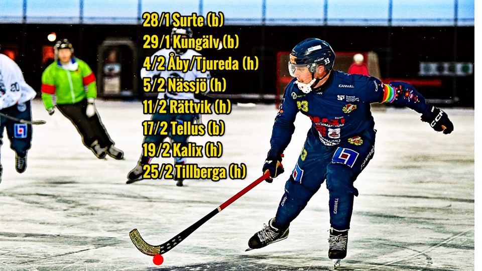Kapten Mårdberg om allsvenska uppehållet, formen och resterande matcherna Efter fredagens sköna bortaseger i måstematchen mot Västanfors dröjer det nu till den 28 januari innan nästa fight. Allsvenskan tar uppehåll och i stället kan BS-fansen följa talangerna Hampus Uhlin och Elliot Hellström i P17- respektive P19-VM i Göteborg kommande helg. För lagkapten Lukas Mårdberg och hans lagkamrater kändes det naturligtvis fint att gå in i uppehållet med en så viktig vinst i ryggen. Hur ser du på uppehållet? – Det kan vara skönt att få en paus från matchandet en helg. Men samtidigt så känns det som att vi har stigande form så det hade varit roligt att köra på också. Vi kommer att köra på med träningarna och hålla igång kropparna och slipa på detaljer för att komma rustade till resten av säsongen, säger Lukas. För BS återstår åtta matcher, fem på hemmaplan och tre borta. Hemma på ICANIWILL Lugnet Arena har BS tagit åtta av sina tio poäng, och i fredags vann man även på bortaplan. Först blir det bortahelg 29-29/1 med matcher mot Surte respektive Kungälv. – Vi börjar ju mot Surte som blir en viktig match att ta poäng i. Och vi är starka på hemmaplan så jag ser goda chanser till fler poäng framöver! Foto: Jan Tengqvist