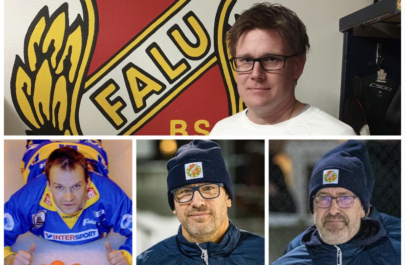 Dags att presentera teamet som ska leda Falu BS i vinter. Huvudtränare är Johan Hedberg som funnits med i tränarstaben i omgångar under flera säsonger, senast under senare delen av säsongen i vintras. – Det känns väldigt roligt. Sportgruppen har gjort ett fantastiskt jobb med att få fram en bred och spännande trupp. Ungt och talangfullt. Nu gäller det att få ihop det lagmässiga, säger Johan Hedberg. Vid sin sida får Johan Falu BS meste spelare genom tiderna – klubbikonen Kenneth Spångberg – som assisterande. Kenneth som efter spelarkarriären var både tränare och sportsligt ansvarig för ett antal år sedan. Nu har han hoppat på tåget igen. – Det är kul. Det är ett väldigt ungt lag, men det finns mycket individuellt skickliga spelare – nu ska vi jobba med att få ihop det på ett bra sätt, och lägga grunden med ett starkt försvarspel, säger den gamle försvarsklippan Kenneth som kommer hålla ett extra öga på just defensiven. I staben ingår fler välkända namn: • Johan Kruse – tidigare anfallsess och även ordförande som kamperat ihop med Johan Hedberg i båset tidigare. Huvudtränare under andra hälften av förra säsongen. Nu får Johan en roll som bollplank för utveckling och målbilder. • Anders ”Blomman” Blomkvist – den tidigare stormålvakten fortsätter i rollen som mental coach. Dessutom kommer Thomas Lundin, en av materialförvaltarna, att stötta upp på isen vid träningarna. Det nya upplägget gör att Johan Hedberg pausar sin roll som ordförande i styrelsen som i stället leds av vice ordförande Anders Westin. Nu på lördag är det dags för första träningmatchen – mot division 1-laget Östersund uppe i Edsbyn kl 11.30. – Det blir ett kul avbrott i träningen, att komma igång på stor plan, få känna på det och hitta nåt gemensamt som vi kan prata om och utveckla vidare, säger Johan Hedberg. Foto: Robert Stenerhag och Leif Forslund.