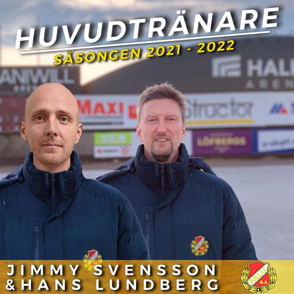 Här är Falu BS nya tränare: Hans Lundberg och Jimmy Svensson – en duo som kommer att dela på ansvaret och nu är riktigt taggade att ta över a-laget! – Det känns grymt kul. Det är en häftig utmaning och ett ärofyllt uppdrag, säger Hasse och får medhåll av Jimmy: – Det känns fantastiskt roligt, jag ser verkligen fram emot den här utmaningen. 52-årige Hasse Lundberg har genom åren haft stora framgångar som ledare i BS ungdomslag. Han ledde den gyllene 1992-generationen med spelare som Victor Lundberg (Hasses son som numera Berling), Petter Björling, Tobias Andersson och Anton Lööf. Han har också tränat sonen Anton Lundberg, numera i a-laget, och har på senare år ingått i tränarteamet för den nuvarande upplagan av framgångsrika juniorer som i fjol tog sig till P17-final mot Villa/Lidköping. Under den gånga säsongen har han också varit med en del kring a-laget. Jimmy Svensson, 31, kom in i a-truppen hösten 2019 som målvakts-backup. Tidigare målvakt i Ljusdal, Broberg och Rättvik. Har stöttat tränarteamet i en analytisk roll, med detaljer i spelet och videoanalyser.? Jimmy har, liksom Hasse, bra koll på spelarna och drivs av att utveckling både på individnivå och kollektivt. Både Hasse och Jimmy är inne på att de vill bygga vidare på spelsättet men skruva på vissa detaljer. – Laget har en bra defensiv men det finns detaljer att utveckla, bland annat att få med fler spelare i anfallen, säger Hasse. – Grunden finns där och det gäller för mig och Hasse nu att förvalta den väl och utveckla den ännu mer så att vi tar de steg som denna grupp har potential till att ta, säger Jimmy. Anders Pehrson i Falu BS sportgrupp gläds över att tränarrekryteringarna nu är i hamn. – Det är väldigt skönt att ha klart med nya tränare. Båda två brinner verkligen för detta och man hör när man pratar med dom hur dom längtar efter att få dra igång, så det ska bli riktigt roligt att se vad dom kan göra ihop med laget! Vi önskar Hasse och Jimmy stort lycka till med tränaruppdraget!