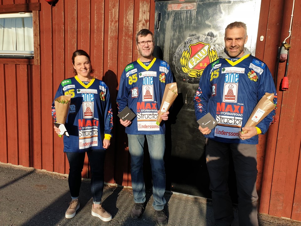 Bland alla fantastiska ledare i föreningen väljer vi denna gång att uppmärksamma Jenny Sjöholm, Klas Åkerblom och Lars Jansson lite extra! I samband med onsdagens styrelsemöte delades blommor, presentkort och finfina matchtröjor ut till trion som tack för värdefulla insatser den gångna säsongen. Jenny Sjöholm och Klas Åkerblom har under vintern och i flera säsonger med den äran skött om Skridskokul på lördagarna, och Lars Jansson har varit en viktig kraft runt A-laget i några säsonger. Med detta vill föreningen också passa på att tacka samtliga ledare, funktionärer och eldsjälar om lägger ner tid och engagemang för föreningen! Guld värt – ett stort tack till er alla! Nu laddar vi batterierna inför nästa härliga säsong! BS HEJ!
